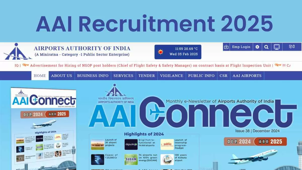 AAI Recruitment 2025: भारतीय विमानपत्तन प्राधिकरण (एएआई) ने जूनियर इंजीनियर (जेई) और गैर-कार्यकारी पदों के लिए अधिसूचना जारी की है। इच्छुक और योग्य उम्मीदवार आज से आधिकारिक वेबसाइट aai.aero के माध्यम से ऑनलाइन आवेदन कर सकते हैं। एएआई जेई भर्ती के लिए ऑनलाइन आवेदन करने की अंतिम तिथि 5 मार्च 2025 है। हालांकि, एएआई गैर-कार्यकारी भर्ती के लिए आवेदन प्रक्रिया 17 फरवरी से शुरू होती है और 18 मार्च को समाप्त होती है। परीक्षा की तारीख उचित समय पर घोषित की जाएगी।