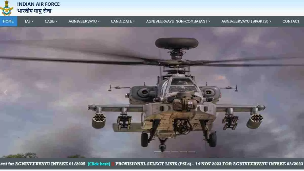 चरण 2: मुखपृष्ठ पर जाएं और “वायु इंटेक 1/2025 के लिए वायु सेना अग्निवीर आवेदन पत्र” ढूंढें।