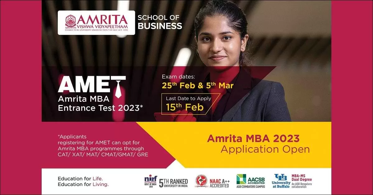 Amrita School of Business has opened admission for its MBA Class of 2023, with a multi-campus structure spread across Bengaluru, Coimbatore, Amaravati, Kochi, and Amritapuri.