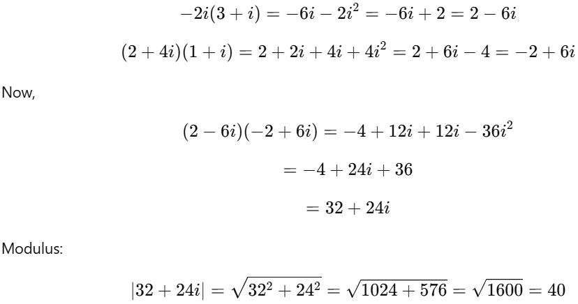 2. Simplify -2i(3+i)(2+4i)(1+i)and obtain the modulus of that complex number.