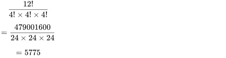 6.There are 4 copies (alike) each of 3 different books. Find the number of ways of arranging these 12 books in a shelf in a single row.