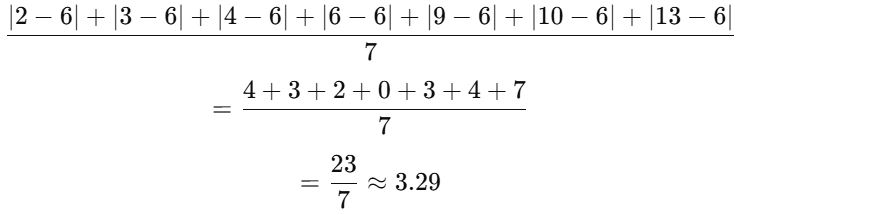 9. Find the mean deviation about the median for the following data: 4, 6, 9, 3, 10, 13, 2.