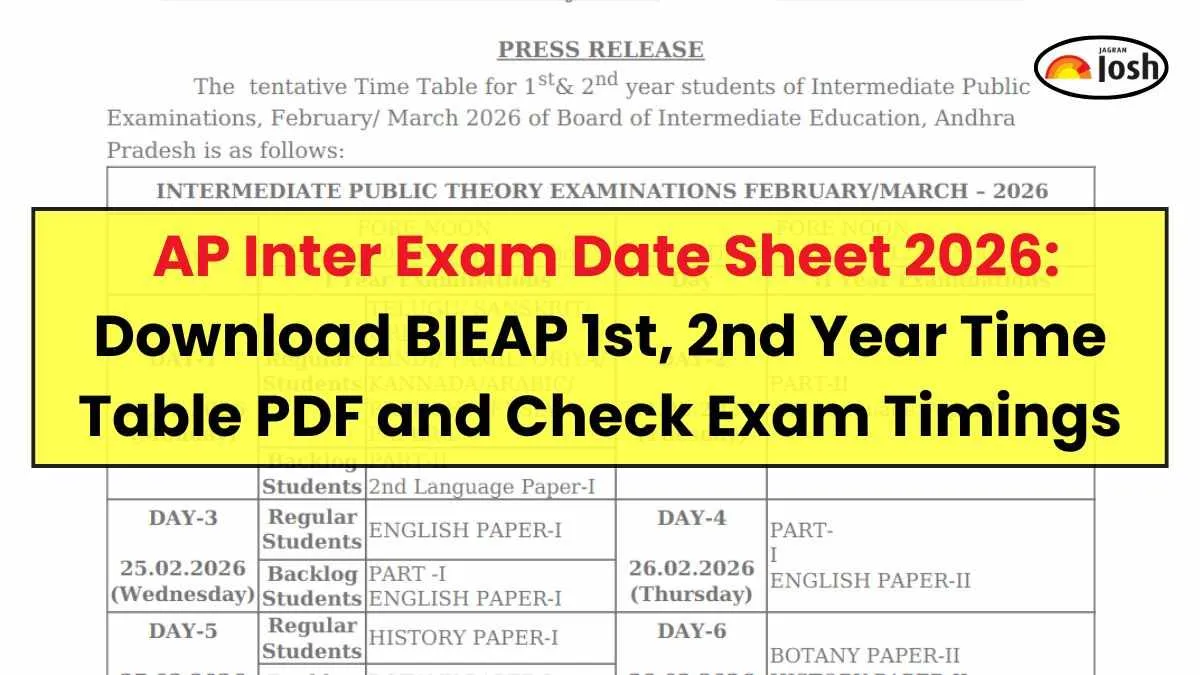 AP Inter 1st and 2nd Year 2026 Time Table: Download PDF |