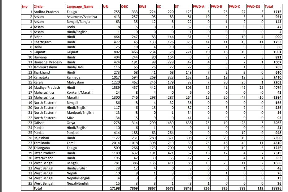 Educational Qualification: Secondary School Examination pass certificate of 10th standard having passed in Mathematics and English. The candidate should have studied the local language.i.e. (Name of Local language) at least up to 10th standard [as compulsory or elective subjects].