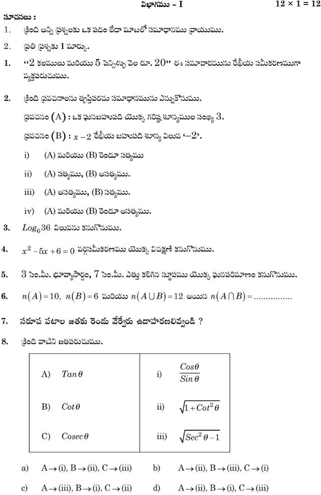 AP SSC Maths Model Paper 2024 (Telugu) - Download PDF |