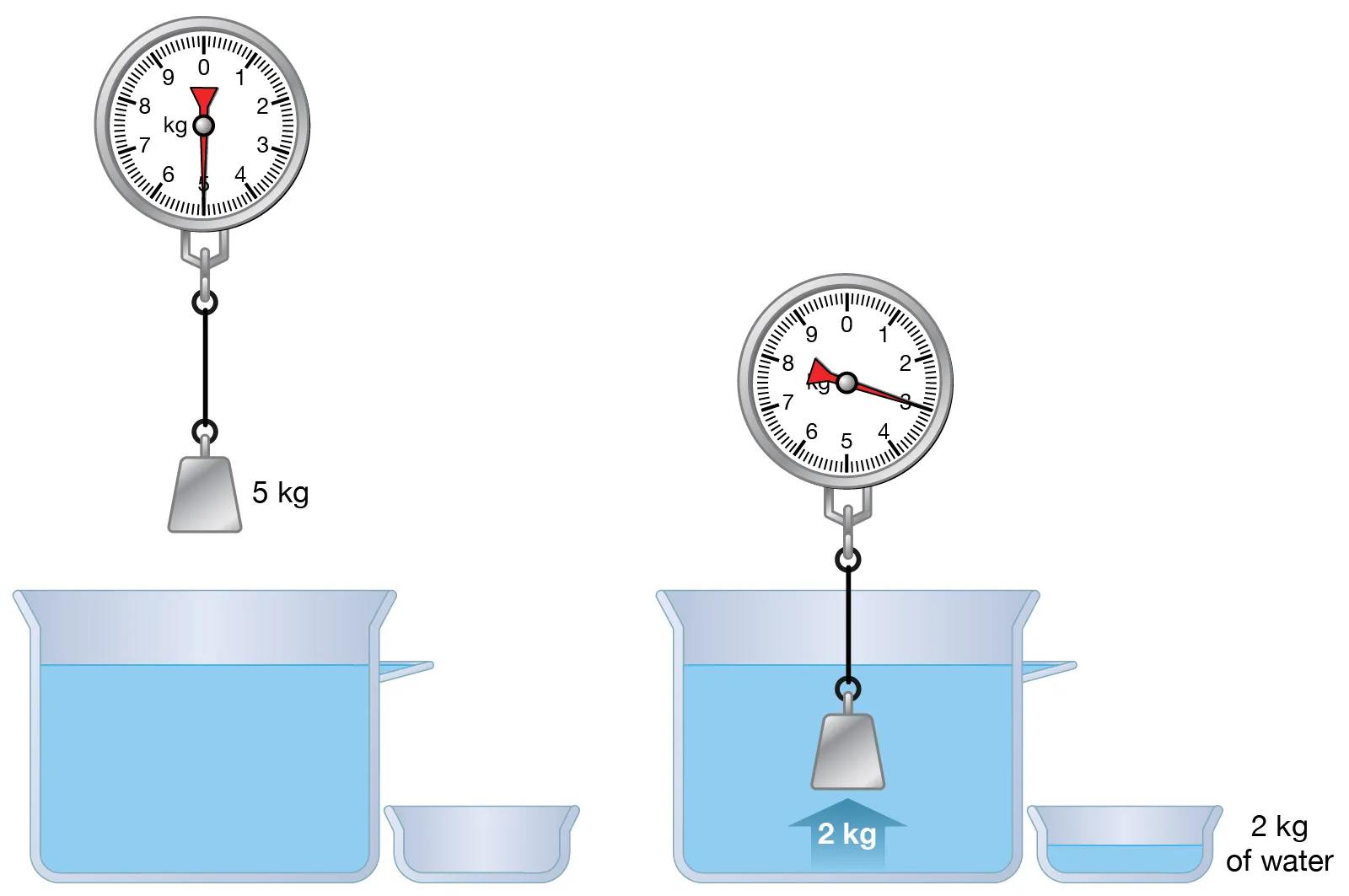 - Materials: Spring scale, beaker, water, object (e.g., a block of wood).