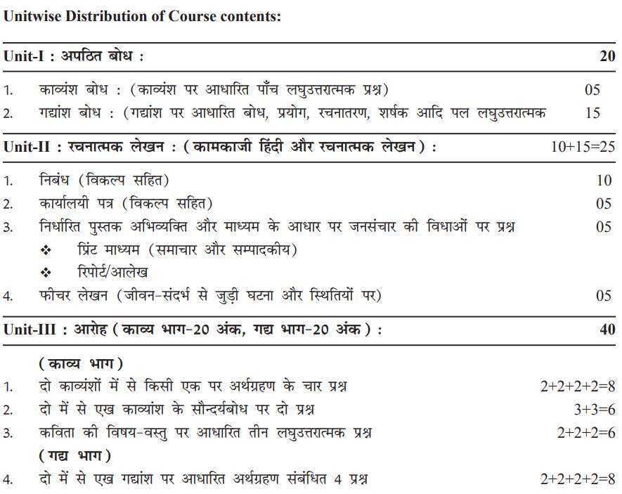 The unit-wise topics are provided here which need to be covered for the Hindi 1st year examination 2025. Check the syllabus below for more details.