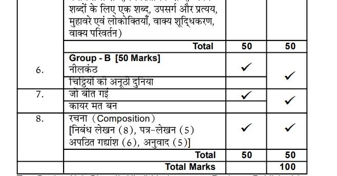 Hindi Elective: Group A & B Full Marks: 100 Pass Marks: 30, Time : 3 Hours, B] English (IL) + Hindi (E) [Group (A) only] Full Marks : 50; Pass Marks : 15; Time : 2 Hours