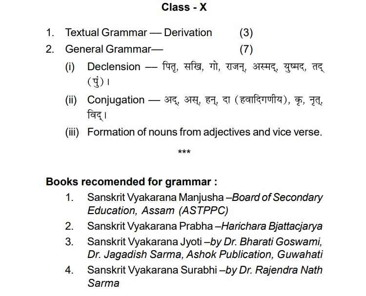 Assam Board Class 10 Sanskrit (Group C) Syllabus 2024-25