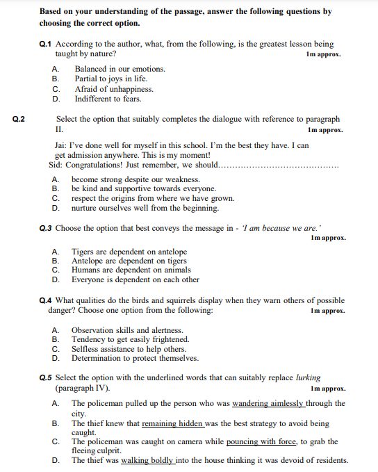 The English Sample Question Paper contains four Sections-Reading, Writing, Grammar and Literature. The question paper is consists of MCQs, subjective and situation based question. Additionally, a link to download the sample papers for free is provided at the conclusion of this article.