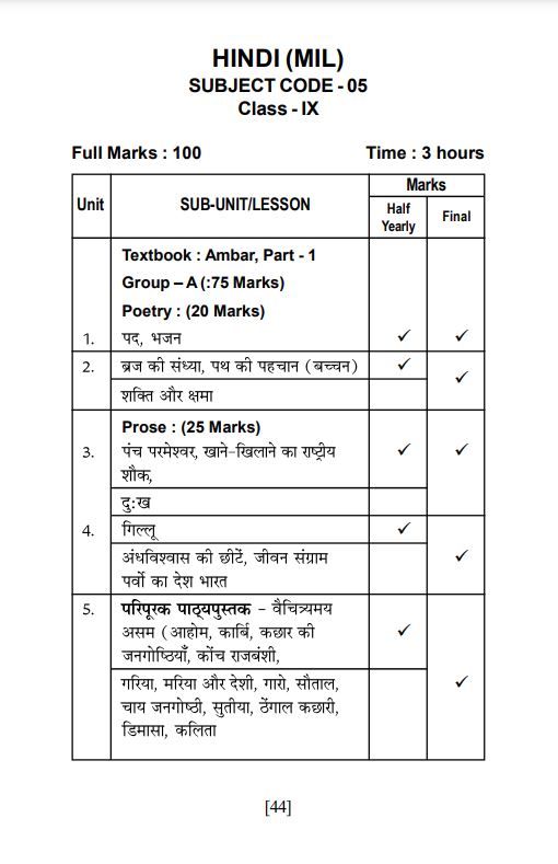 SEBA Class 9 Hindi Syllabus 2024-25
