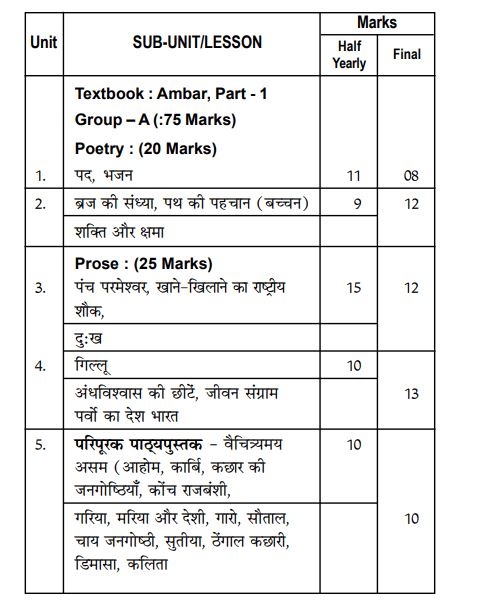 Assam Board HSLC Class 9 Hindi Syllabus and Marking Scheme 2023-2024