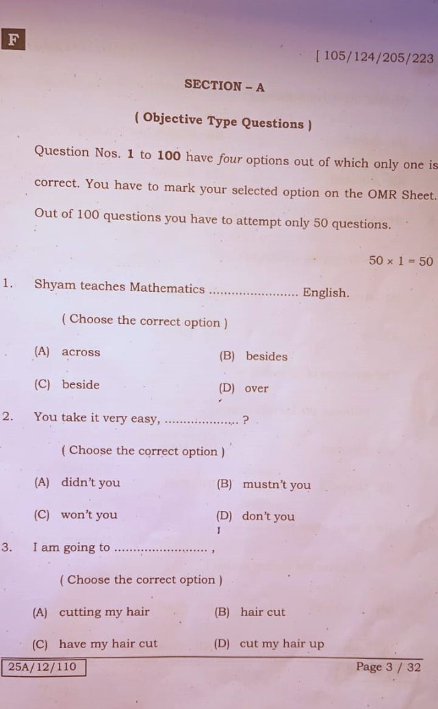 - This section contained 100 multiple-choice questions (MCQs), out of which students had to answer only 50.