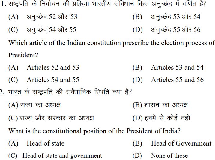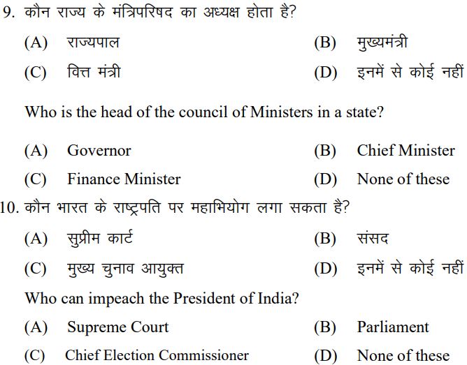 Bihar Board 12th Political Science Model Papers 2024-25 (in Hindi & English)