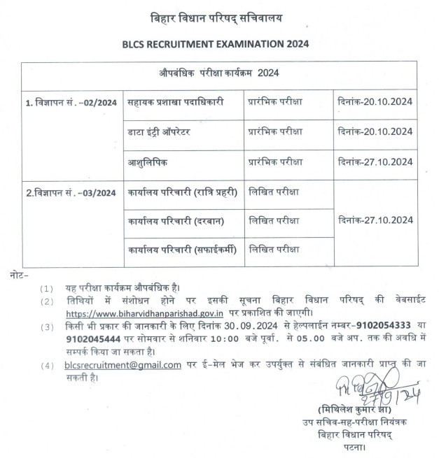 Bihar Sachivalaya Various Post Admit Card 2024 Download Kaise Kare?