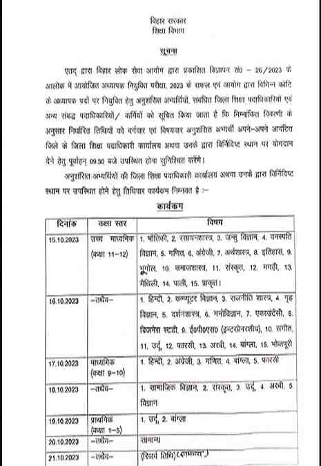 बीपीएससी शिक्षक भर्ती से जुड़ा एक अहम नोटिस जारी