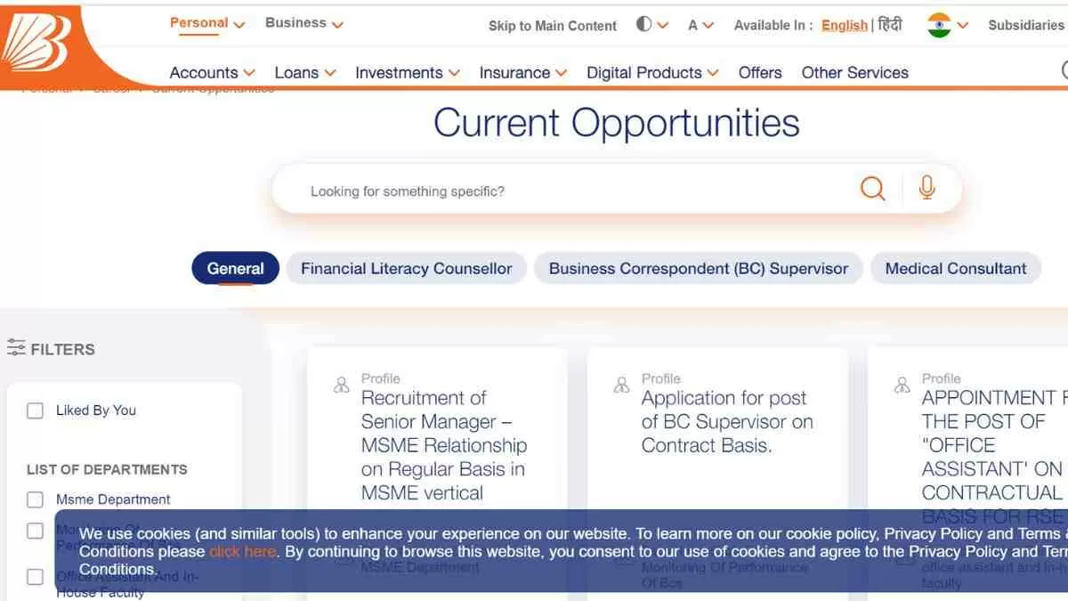 - चरण 2: होमपेज पर बीओबी प्रबंधक भर्ती 2023 लिंक पर क्लिक करें।