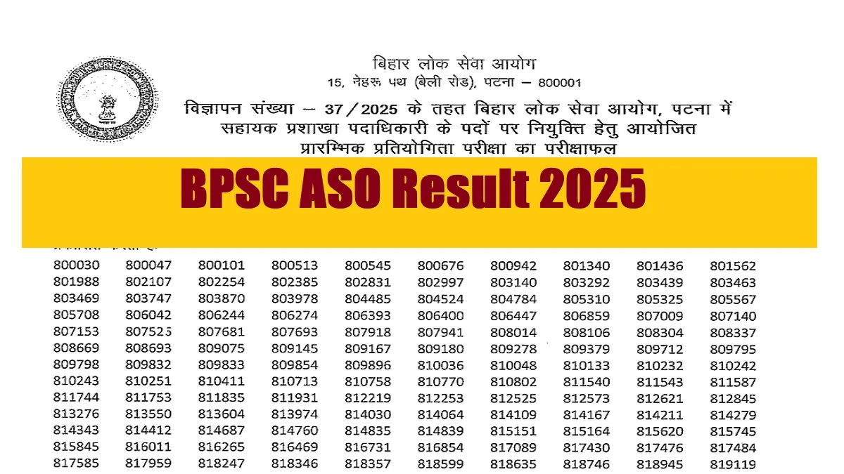 BPSC ASO Result 2025 Out: The Bihar Public Service Commission (BPSC) has released the preliminary competitive examination result for the posts of Assistant Section Officer (ASO) against Advertisement number 37/2025. A total of 60,517 candidates appeared in the preliminary competitive examination held on September 10, 2025 across the state. The result has been released in PDF format containing the roll number of the shortlisted candidates in prelims round. Candidates who appeared in the written exam can download the result from the official website of BPSC-bpsc.bih.nic.in.