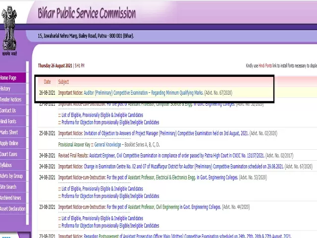 BPSC Auditor Prelims 2021 Exam: Bihar Public Service Commission has released an important notice regarding the Minimum Qualifying Marks against the Advt. No. 67/2020 for recruitment to the post of Auditor. All those candidates who appeared in the exam can check the complete details on the official website of BPSC.i.e.bpsc.bih.nic.in.