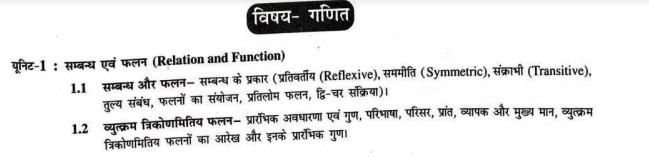 नीचे कक्षा 12 के बिहार बोर्ड गणित सिलेबस के कुछ संदर्भ चित्र दिए गए हैं। ये biharboardonline.com पर प्रकाशित किए गए हैं। नीचे दिए गए लिंक पर क्लिक करें और मुफ्त PDFs डाउनलोड करें।