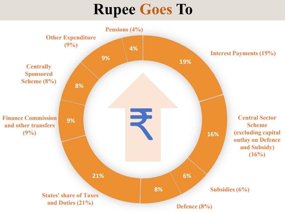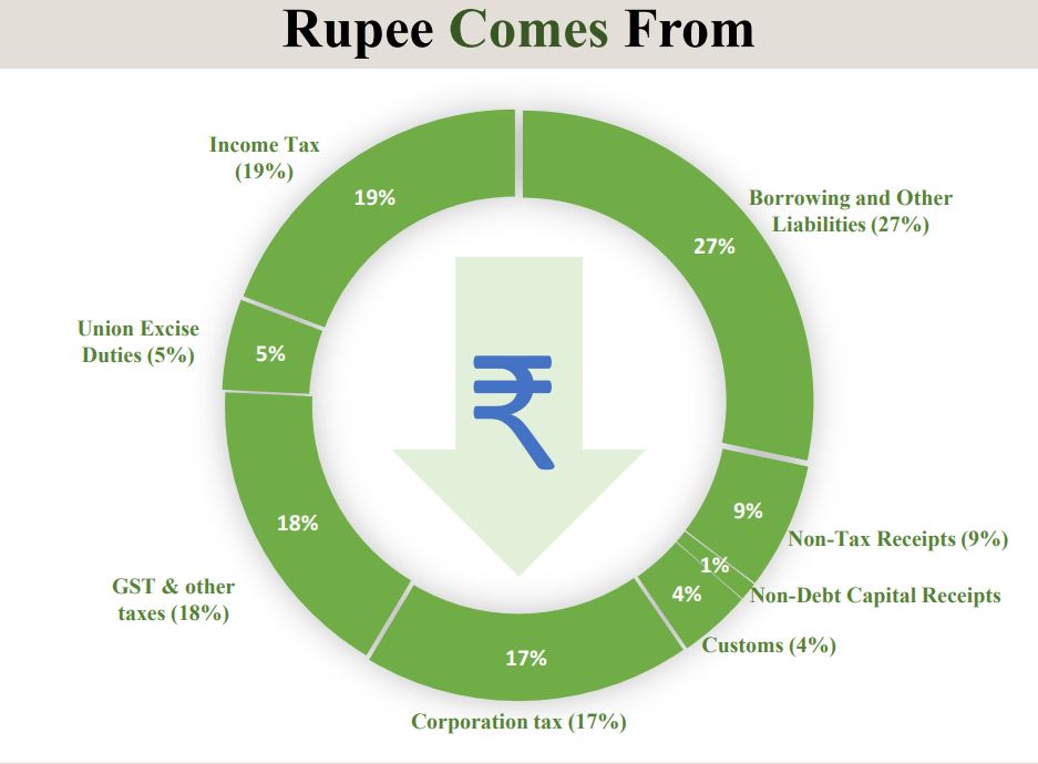 Check the chart below to know about form where government will earn money and where its is going to invest