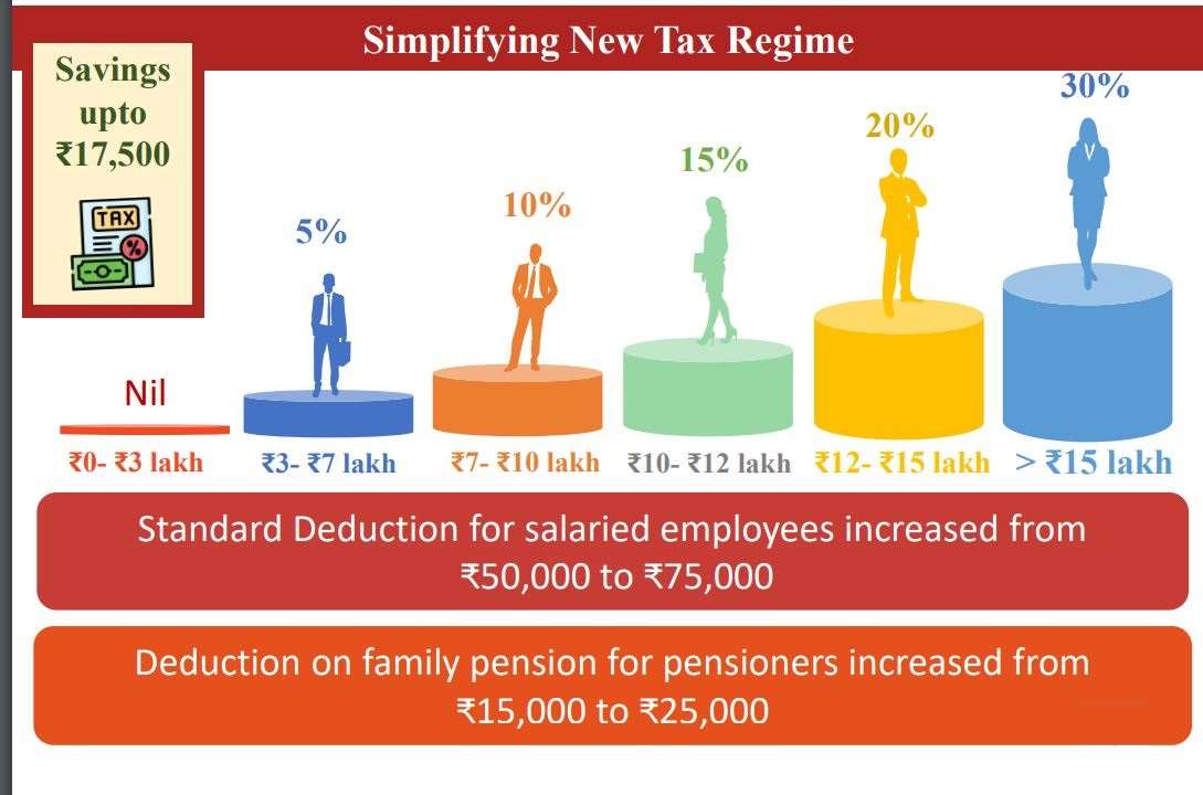 Standard deduction for salaried employees increased from ₹50,000 to ₹75,000.
