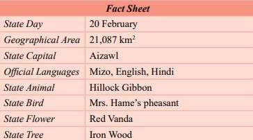 Mizoram means ‘Land of the Hill People'. Its capital is Aizawl. It shares an international boundary with Myanmar in the south and east, and Bangladesh in the west. According to NCERT, Following the signing of the historic Memorandum of Settlement between the Government of India and the Mizo National Front in 1986, it was granted statehood on 20th February 1987. Mizoram has the highest concentration of tribal people among all states in India.