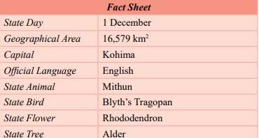 Nagaland is another seven sister state. It shares its border with Assam and Myanmar in the west, Arunachal Pradesh and part of Assam in the north and Manipur in the south. Its capital is Kohima. As per NCERT, at the time of independence of India in 1947, Nagaland remained as a part of Assam province. In 1957, the Naga Hill district of Assam and the Tuensang frontier were united and formed a single administrative unit. Then Statehood was officially conferred on 1 December 1963.