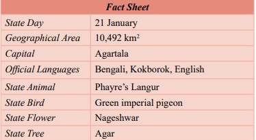 Tripura is the third smallest state in India. Agartala is its capital. Tripura shares a common boundary with Assam and Mizoram on the north-east and is bounded by Bangladesh in the north, west and south. Tripura was a princely state at the time of British rule. In 1949,the state became a part of independent India.