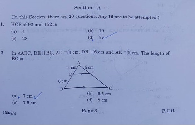 Disclaimer: This CBSE 10th Maths (Basic) answer key is for reference purposes and is not final. It is expected that the Official Maths (Advanced) answer key will be published by the board after the declaration of result.