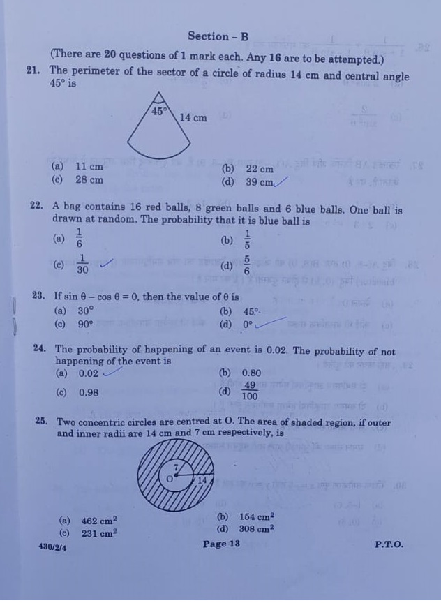 ⇒ CBSE Class 10 Maths Question Paper 2021-22 (PDF) - Basic
