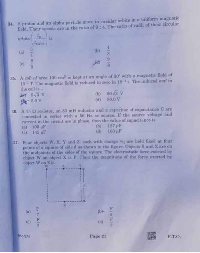 CBSE Answer Key 2021-22: Class 12 Physics (Term 1) CBSE Board Exam 2021-22