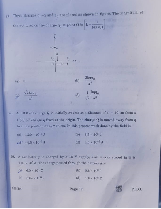 3. An object has charge of 1 C and gains 5.0 x 10^18 electrons. The net charge on the object becomes-