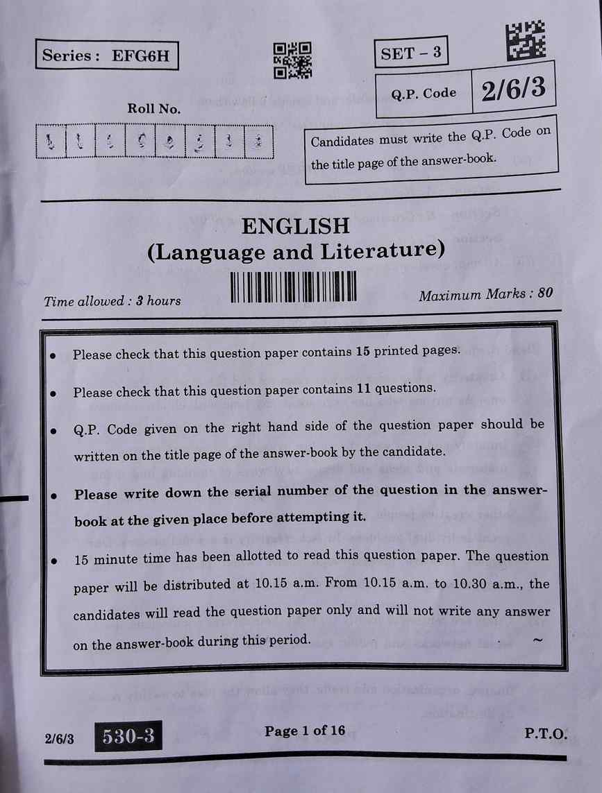 CBSE Class 10 English Language & Literature Question Paper 2025 (SET 3)