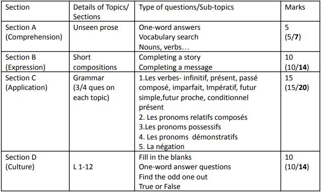 Check Course Structure for Class 10 French 2021-2022 (Code 018):