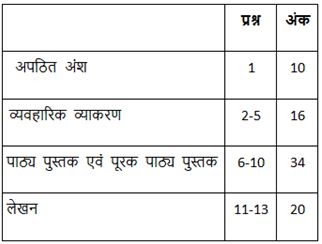 Question no. 11 - 13 (Textbook and Supplementary Textbook - 20 marks) - These will include subjective type questions based on the chapters given in the textbook and supplementary reader (पाठ्य पुस्तक एवं पूरक पाठ्यपुस्तक). All the questions will have sub-questions (of 2 and 3 marks) with internal choices.
