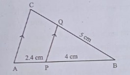 In the given figure, PQ||AC. If BP=4 cm, AP=2.4 cm and BQ=5 cm, then length of BC is: