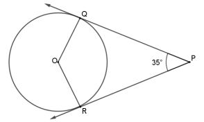 | 5 | In the given figure, PQ and PR are tangents to a circle centred at O. If ∠QPR=35∘ then ∠QOR is equal to (A) 70∘ (B) 90∘ (C) 135∘ (D) 145∘ | 1 | ||||||||||||||