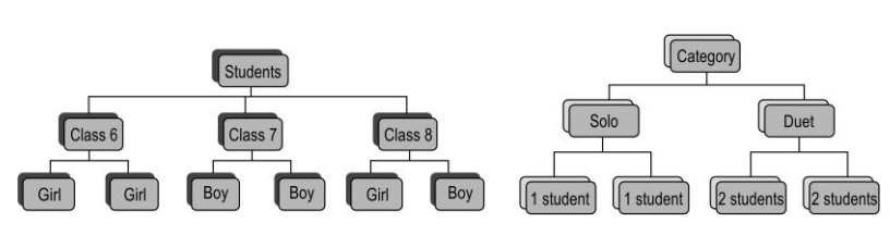 Q:4 6 students from Daffodil school participated in an inter school dance competition. Each of these 6 students were limited to one performance. There were 2 solo dance categories and 2 duet dance categories as depicted by the flow charts below.