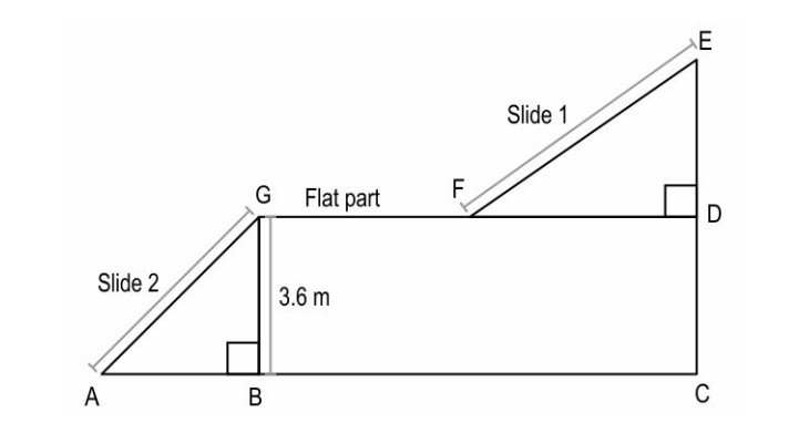 | Q:5 If slide 1 makes an angle of 150° with the flat part and FD = 8.5 m, what is the height of the top point of slide 1 from the ground (EC)? 1 5 m 2 8.6 m 3 10 m 4 12.1 m |