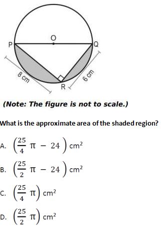 4.In the figure given below, O is the centre of the circle. PR and RQ are chords of the circle. The radius of the circle is 5 cm. PR = 8 cm, QR = 6 cm and ∠PRQ = 90°.