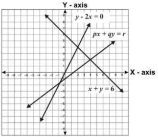 5.Shown below are the graphs of the lines 𝑦 − 2𝑥 = 0, 𝑥 + 𝑦 = 6 and 𝑝𝑥 + 𝑞𝑦 = 𝑟.