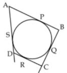 3. In the figure quadrilateral ABCD is drawn to circumscribe a circle. Prove that AD + BC = AB + CD.