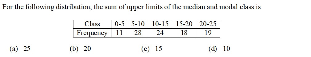18. If mode and mean of a data set are given as 8 and 9 respectively, then the median of the data set is