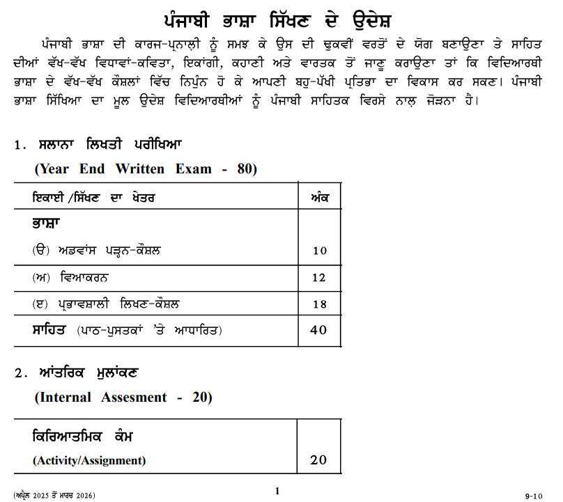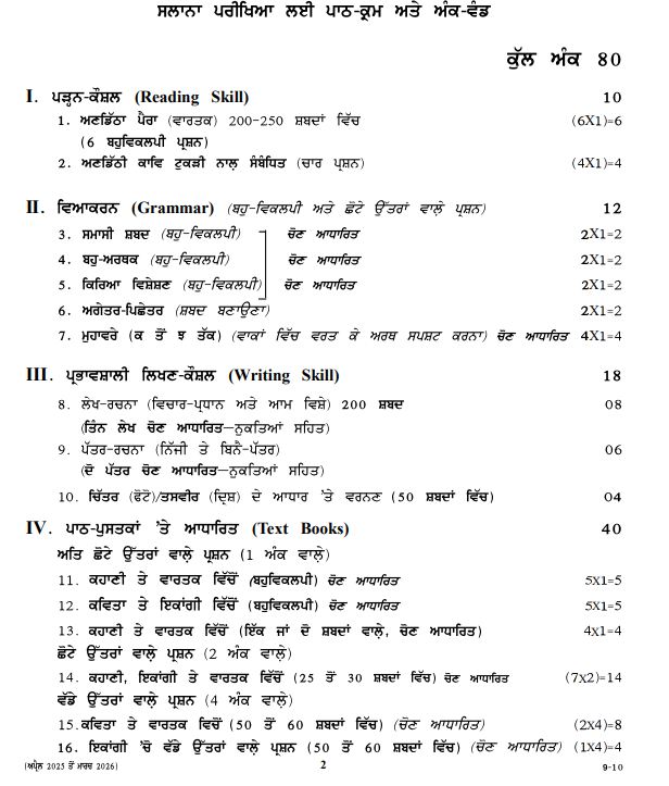 CBSE Class 10 Punjabi Syllabus 2025-26