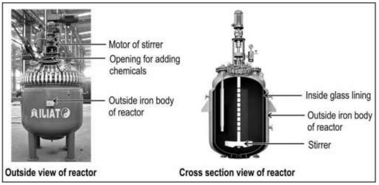 Many chemical reactions like the one shown below, are carried out in glass- lined, iron chemical reactors instead of directly in iron reactors.