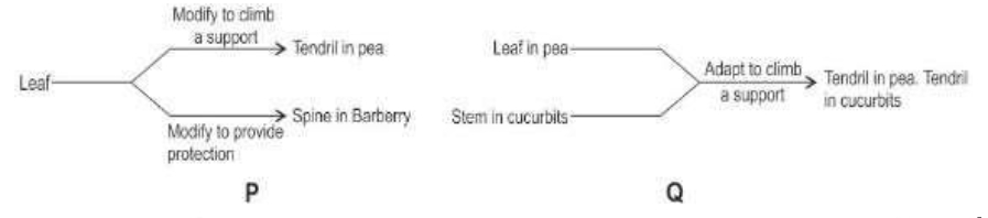 | Q.2 | Study the diagrams given below that depict the analogy/homology of organs and answer the questions that follow. ![]() Which diagram represents evolution of homologous organs?