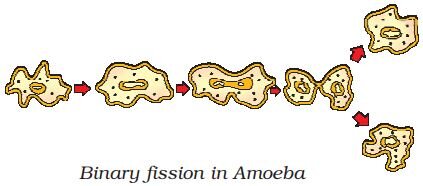 → Binary fission: When the fission results in two daughter cells, it is binary fission. For example - Amoeba and Paramecium.