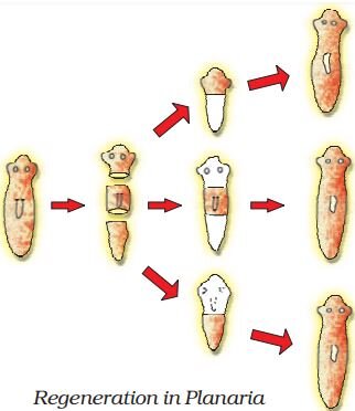 (iii) Regeneration: In this, a few organisms may give rise to new individual organisms from their body parts. For example - Hydra and Planaria.