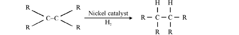 Hydrogen is added to unsaturated hydrocarbon in presence of palladium or nickel as catalyst. This process is used in converting vegetable oils into vegetable ghee.